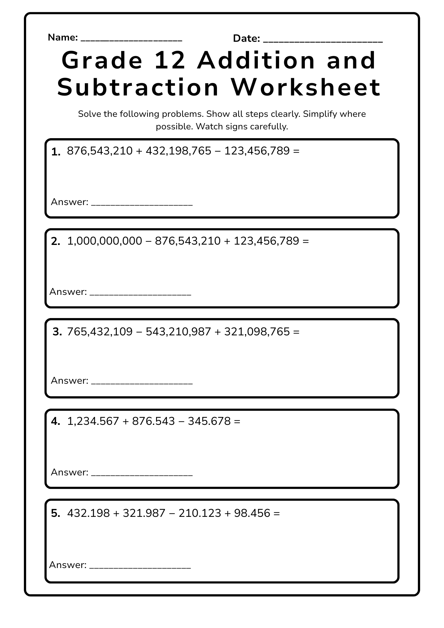 50+ FREE Addition and Subtraction Worksheets (Preschool, 2nd Grade, 3rd Grade, 4th Grade, High School, 3-Digit)