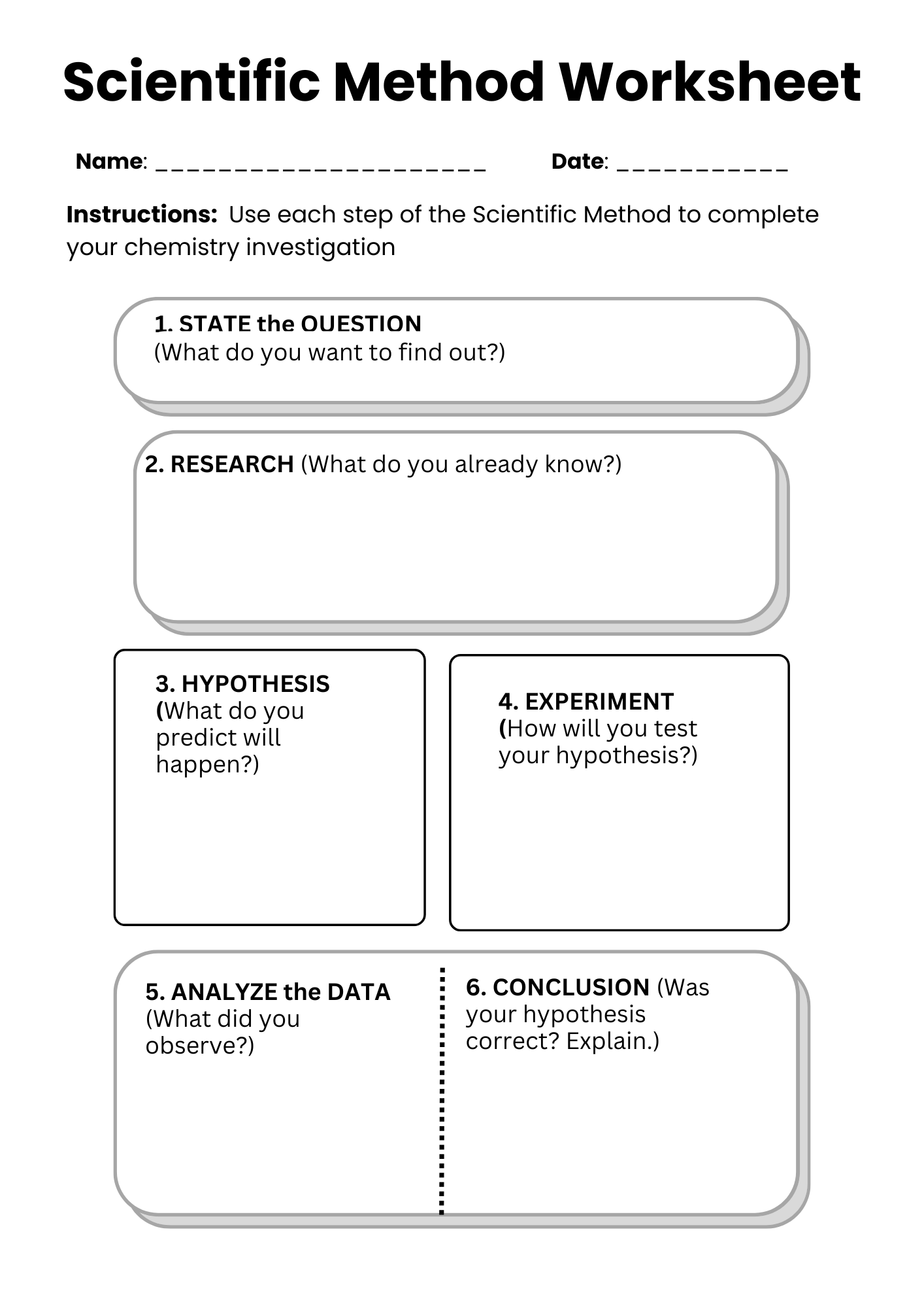 ✅ Enhances Structured Learning: By guiding students through the specific steps of the scientific method, worksheets help in maintaining a clear and organized approach to scientific investigations.